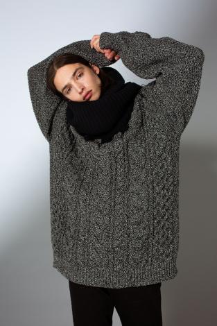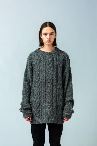 ラムウールの糸をローゲージで編み立てたケーブルニットになります。冬の定番であるケーブルニットを。非常にソフトな着心地と、まるで手編みの様なふっくらとしたボリューム感のある編み仕様に仕上げているのが特徴です。一枚での着用も、インナーとしても使い易い様に程よくゆったりとしたシルエットに仕上げており、シンプルになりがちなコーディネートにお使い頂けます。定番なアイテムだからこそ、他と差をつけられる上品な仕上がりとなっております。