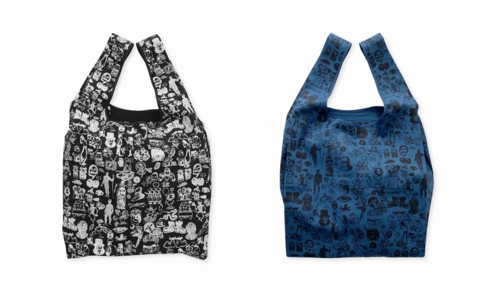 容量は大サイズのレジ袋ぐらいになり、くい込みにくい広めの持ち手で肩掛けもできます。