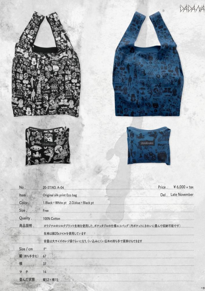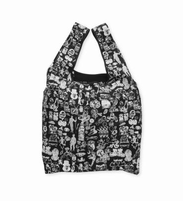 オリジナルのシルクプリント生地を使用した、ポケッタブルの仕様エコバッグ(内ボケットにきれいに畳んで収納可能です)。