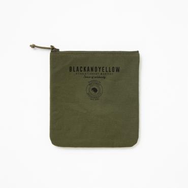 頑丈なダック地に昔ながらの染み込みプリントを施し、製品洗いをかけたジップ式の汎用型ケース。ミリタリーライクなカラー展開は様々なスタイルのバッグに親和するので、散らばりがちな小物などを管理するにはあつらえ向き。ジッププルには丸紐を結わえて開閉しやすくしている。