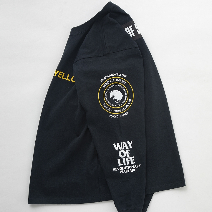 先シーズンも同様のグラフィックでリリースしたロングスリーブTはモーターサイクルカルチャーから着想を得た意匠。レーシングジャケットのように様々なロゴやグラフィックを随所にあしらっていて、ボディは度目の詰まったオリジナルのコットンジャージー製。今季はアームホールや肩周りがよりゆったりとしたシルエットにアップデートしていて、袖付けもドロップショルダーとの相性の良さを前提に行なっている。