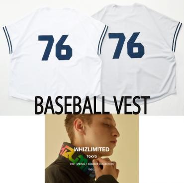 大き目のベストをTシャツのように着たい今シーズン。WHIZLIMITEDと言えばなベースボールシャツがベストタイプで登場です。パット見でよさそうな仕上がりで、まずは素材がめちゃめちゃ涼しいので真夏にどうぞ。吸水速乾で汗も大丈夫。フロントにはTOKYOの文字にシルエットネームが配置、バックには大きく76で素敵です。中に着るTシャツのバランスで雰囲気が変化します。もちろんシャツですので開けて着てもきっと使える個人的におすすめアイテムです。