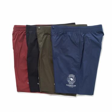軽量かつ撥水性を備えたストレッチナイロン製のショーツ。クセの少ないヒザ丈なのでトップスはジャストでもルーズでも自然に着こなせる。ウエストはドローコード式のジップフライ。左腿に入るグラフィックの違う2型がラインナップする。