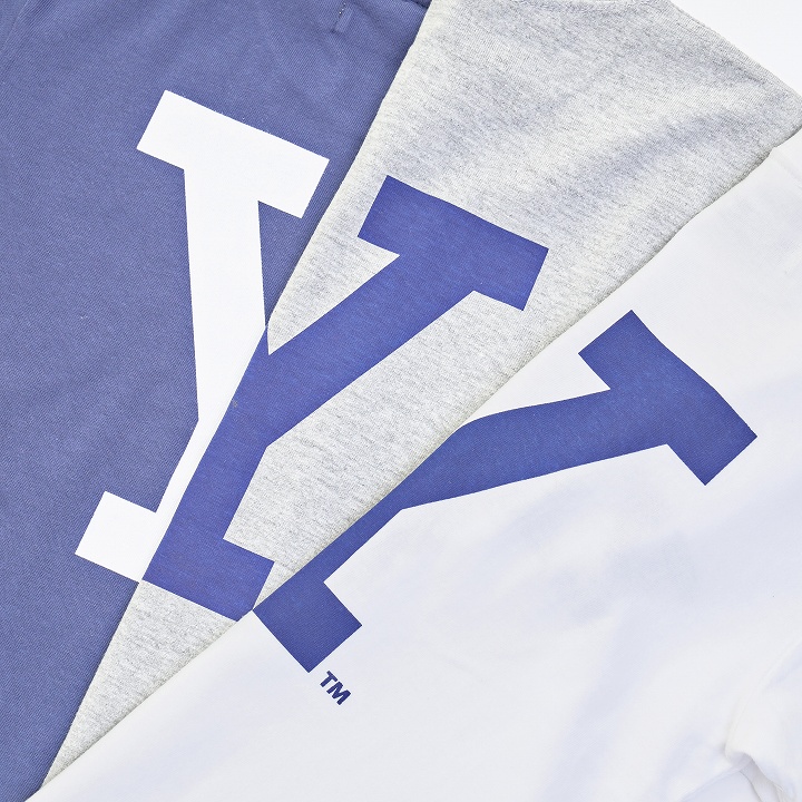 [着心地の良いヴィンテージ]をテーマに、ヴィンテージアイテムとしては有名なアメリカの「イエール大学」のスウェットをイメージしてキッズサイズのTシャツで表現しています。背中には人気の[Y]ロゴが入ります。WHT BODY、GRY BODYは染み込みプリント、NAV BODYは顔料プリントになります。