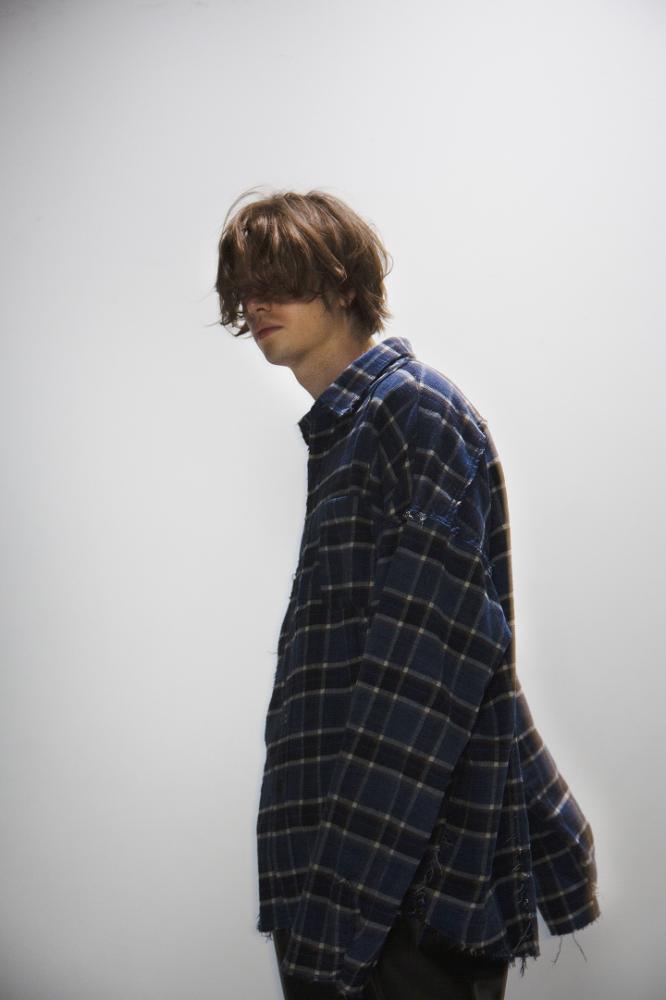 先染めした柔らかなチェック生地を使用したチェックシャツ。ヴィンテージのような起毛を施した風合いの生地を使用し、全ての箇所を断ち切りにしてグランジファッションの様な着古した雰囲気に仕上げました。オーバーサイズで着用していただける様にビッグなシルエットで仕上げており、袖に溜まりができる様に一般的なシャツとは異なる袖のボタンの留め方も変えています。一見シンプルなチェックシャツですが、ハギ目を増やし、断ち切り箇所を増やしてアクセントになっています。