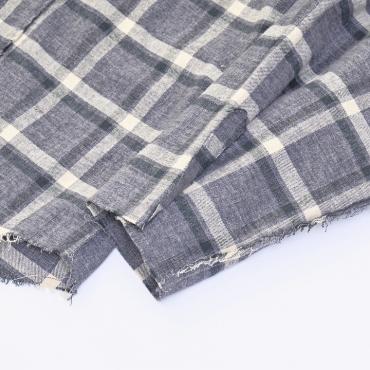 先染めした柔らかなチェック生地を使用したチェックシャツ。ヴィンテージのような起毛を施した風合いの生地を使用し、全ての箇所を断ち切りにしてグランジファッションの様な着古した雰囲気に仕上げました。オーバーサイズで着用していただける様にビッグなシルエットで仕上げており、袖に溜まりができる様に一般的なシャツとは異なる袖のボタンの留め方も変えています。一見シンプルなチェックシャツですが、ハギ目を増やし、断ち切り箇所を増やしてアクセントになっています。