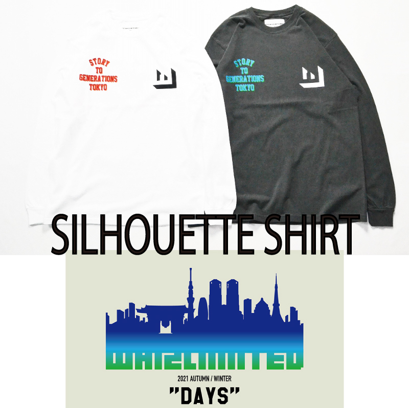 「顔料染めが施されたロングスリーブTシャツ。製品後の洗いによって表面に顔料染め特有のムラ感が出ています。フロントには立体的なプリント。 背中には TOKYO SILHOUETTE LOGO がグラデーションで入ります。」