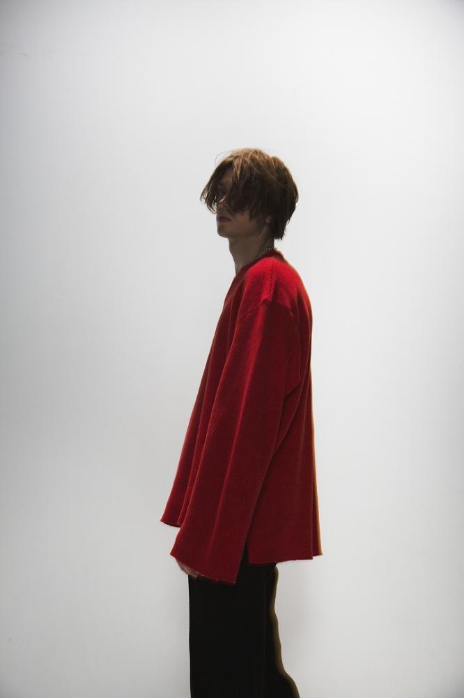 リブ編みの生地で作成したオーバーサイズのリブニット。ゆったりとしたシルエットと落ち感のある生地を使用する事で程よいヌケ感を表現しております。袖口や首元など、ダメージの様に全て裁ち切りで仕上げている為、裁ち切り面が洗いを重ねるごとに表情が変わっていく仕上がりとなっております。コットン素材の為、カットソー感覚でラフにお使い頂ける一着となっております。広がった袖がアクセントとなっております。