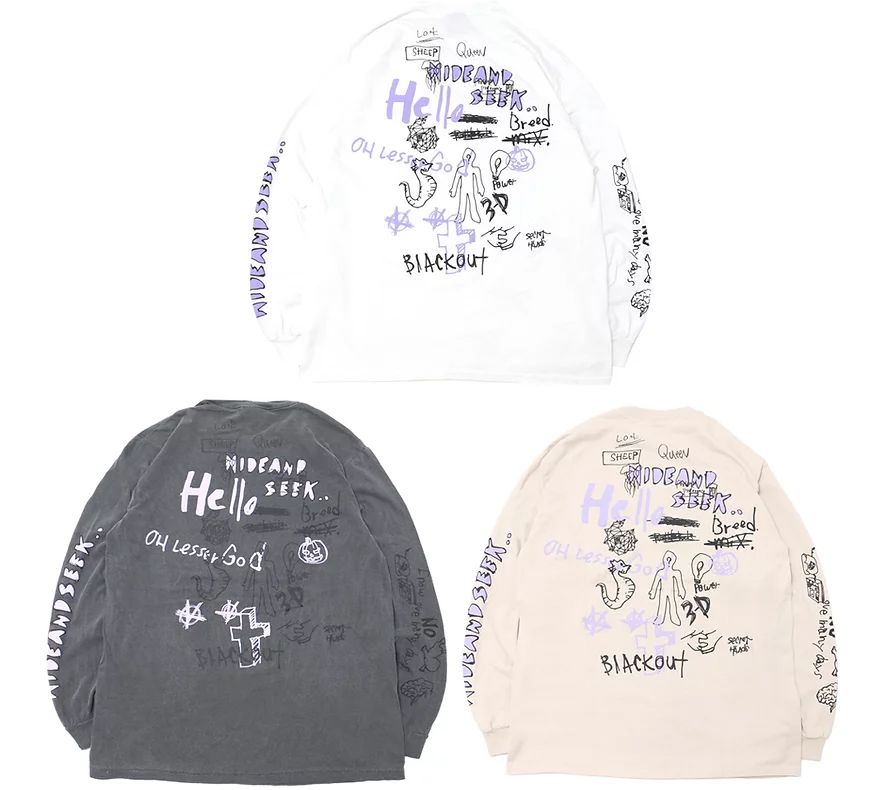 背中と袖にプリントが入ったロングスリーブTシャツ。