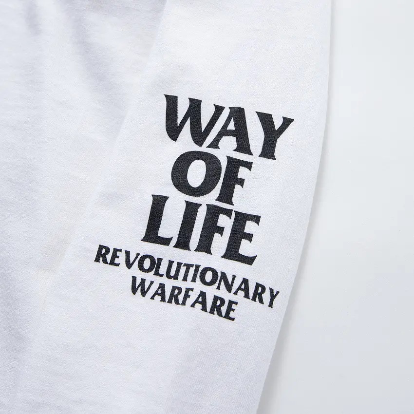 8.5オンスのコットン天竺オリジナルボディーを使用したロングスリーブTシャツ。前身頃の胸元中央にBLACK&YELLOW、右胸にLOCAL-13、左胸にOriginal、両腕にサークル型RATモチーフとWAY OF LIFEのグラフィックをシンメトリーに配置したデザイン。ネックはロックネック仕様。モーターサイクルカルチャーを感じさせるグラフィックパターンで構成したアイテム。