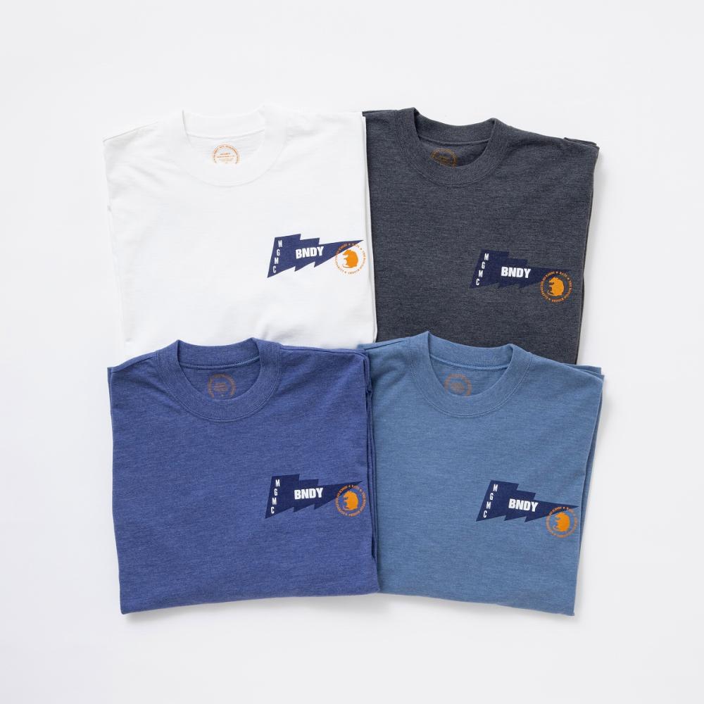 オリジナルで作成した6.4ozのポリエステル/コットン/レーヨンの3種混紡素材を使用したロングスリーブTシャツ。ネックはRatsらしいタフさのあるダブルステッチで仕上げたバインダーネック仕様。左胸にBNDY・MGMCのレターグラフィックをプリントしたサンダーモチーフを染み込みプリント、Ratモチーフ・サークル型のレターグラフィックをラバープリントで表現したデザイン。脇下から体に沿う様に計算された縦のラインが綺麗なレギュラーフィットシルエット。ワンウォッシュ仕上げ。