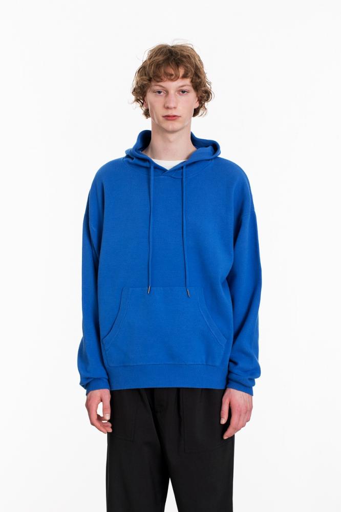シルクの様な光沢感があるビスコースナイロン糸でハイゲージに編み込んだニットパーカー。着心地を重視したこちらのパーカーは非常に肌触りが良く、ゆったりとしたオーバーサイズながらに、柔らかくテロンとした落ち感でドレープのあるリラックスした仕上がりとなっております。スウェット素材とは異なる伸縮性と高級感があり、非常に上品な1着となっております。