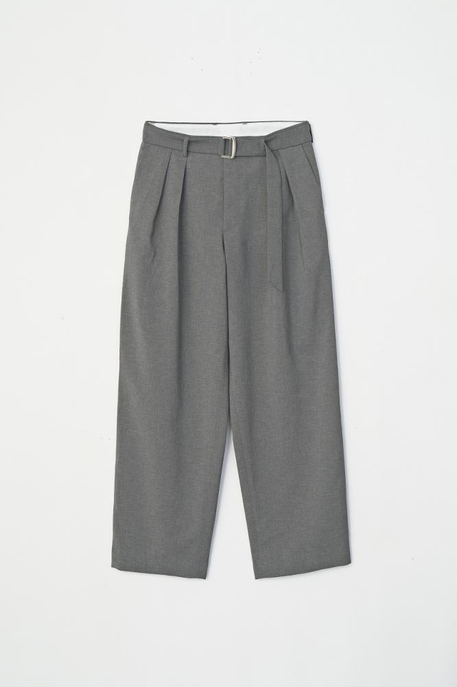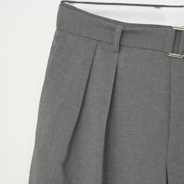 季節に合わせて清涼感のある素材を使用したスラックス。毎シーズン弊社の定番で使用している生地で、非常に涼しく、シワにならず、速乾性+撥水と機能を兼ね備えた一着。ワイドシルエットで腰回りは2本のインタックでにゆとりを持たせております。共地の付属ベルト付き。ノーカラージャケットとのセットアップ。