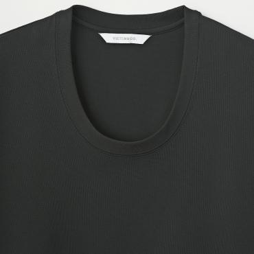 適度な光沢がある度詰な生地で仕上げたUネックTEE。ハイゲージで編み立てたシルクの様な光沢感のある綺麗な目面で、適度なしなやかさとハリや膨らみがあり、高級感のある一枚。ボトムスとの相性を考え、着丈を削りつつも、幅を持たせ、あえて袖丈を伸ばしてゆったりとしたシルエットに仕上げました。