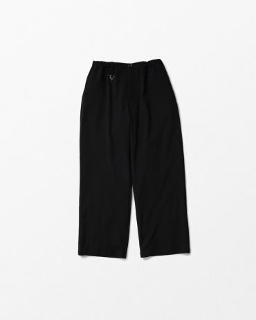 WHIZのキレイめパンツシリーズはいつも間違いなしのアイテム。そして真夏用に登場はこんな大人なストリートに使える一本です。ウールのように見える生地はポリエステルのウォッシャブル(洗える)素材でガシガシおうちで洗えます。夏のとっても大切なポイントです。シルエットは裾幅までゆったり太めで酷暑にも負けない涼しさ100点タイプです。20年以上経過したからこその大人なWHIZをお楽しみいただければと思います。ウエストはゴムで楽ちん、キーパーツ、ジップはオリジナルです。サイドにはコンシールファスナーでポケット、ベルトループは2重で細いベルトにも使いやすく。といういつものWHIZのスタイルが集大成になってる感じる良いパンツですね。どうぞお楽しみください。