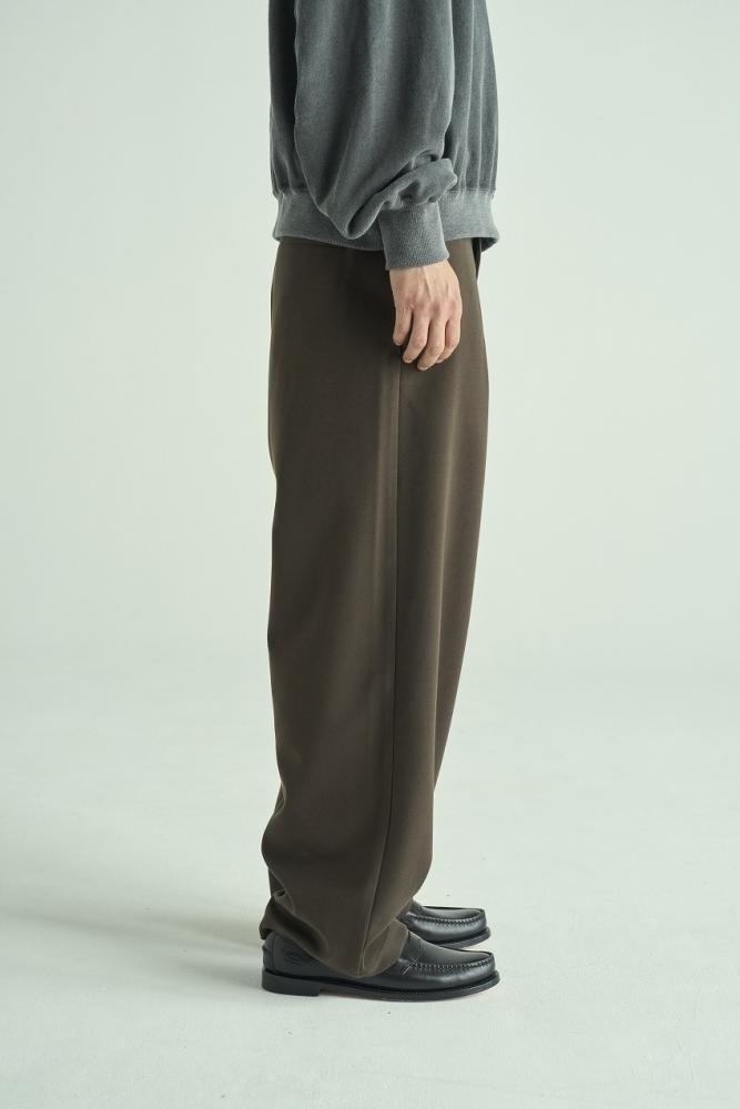 圧縮フラノ素材を使用したワイドイージーパンツ。