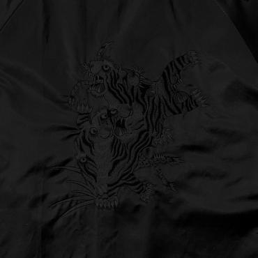 表地はレーヨンとコットンを交織したサテン地を使用しています(レーヨン特有のドレープ感と光沢感を残しつつハリのあるタッチが特徴)。