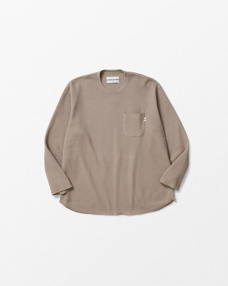 インナーの必須アイテムと言えばなサーマル。コットンでロングスリーブの不変のサーマルは形も素材感も最高です。一枚でもレイヤードにも使える最高のアイテムは着るだけ楽しい事はこの上なし。裾から袖からチラリと見える着心地よしのアイテムはこれからずっと一緒に過ごしてくれます。新作は袖口にリブ無しでリラックスタイプ。カラーの定番ホワイトの便利さは100点で、珍しいベージュとピンクなんて120点で新しいスタイルや合わせ方に連れて行ってくれます。説明不要のWHIZのレイヤードスタイルには欠かせない存在です。ステッチや裾のラウンド、もっちり素材のポケットとネーム、洗えば洗うほど馴染む自慢のインナーをお楽しみください。後悔はさせません。