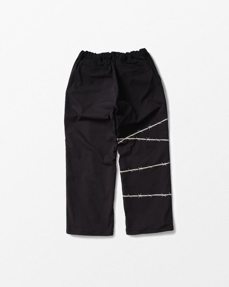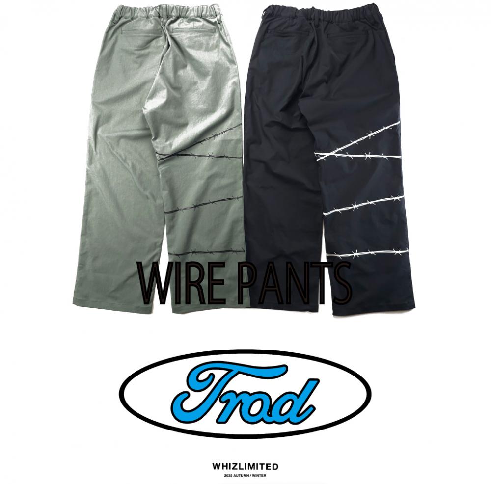 WHIZの代表作の一つワイヤー。そんなWIRE柄が入ったジャケットと合わせTてパンツも登場です。そのWIREのデザイン配置が時代と年代を感じれるような右足の後身にオン。過去では前身頃の股部分に入っていましたがこのアップデートでさらにWHIZらしくまとまったイメージになっています。前からは素材がクールマックスで快適間違いなしの大人なワイドパンツ、そして横や後ろから見ると分かるワイヤー使いで雰囲気最高な一本です。右足のワイヤープリントのオリーブにはブラックワイヤー、ブラックには蓄光ホワイトワイヤーで渋くかっこよくまとまっています。ウエストはゴムとコードで快適、さらに素材がクールマックスですので快適かつ独特な素材感が今の季節に着る楽しみをさらに増やしてくれる、セットアップでも楽しめるそんなパンツを是非お試しくださいね。