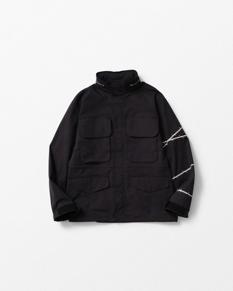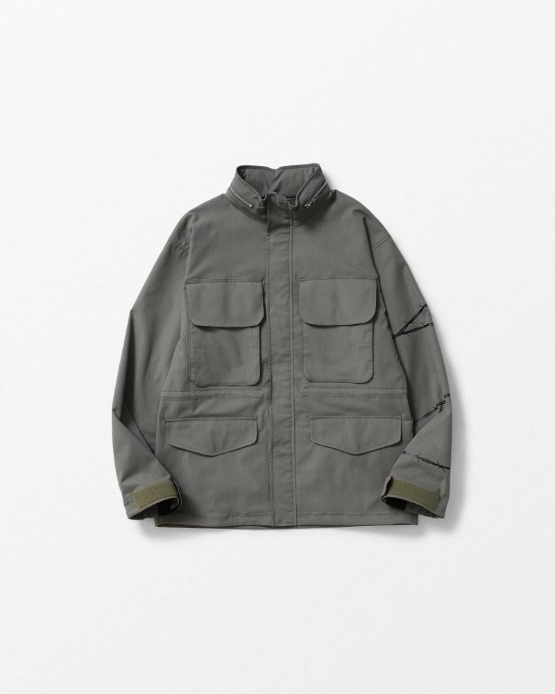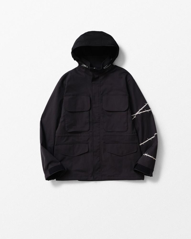 WHIZの代表作の一つのワイヤー。その懐かしさとバランスで新しさをを感じる今季の代表ジャケットが登場です。お得意のミリタリーな要素たっぷりにフィッシングジャケットの利便性もプラスされた大人なストリートな融合で25年を感じるアイテムです。左腕にはワイヤープリントでオリーブにはブラックワイヤー、ブラックには蓄光ホワイトワイヤーで渋くかっこよくまとまっています。そして背中にはWサンダー刺繍がブラックで。襟に収納されたフードももちろんぬかり無しの作りで便利。袖先や比翼裏、ポケットフラップ裏にはアウトドアジャケットの雰囲気を出すブラックの混紡素材を使用しています。素材がクールマックスですので快適かつ独特な素材感が今の季節に着る楽しみをさらに増やしてくれる、そんなおすすめジャケットをお見逃しなく。