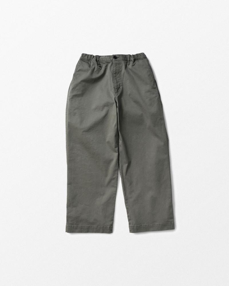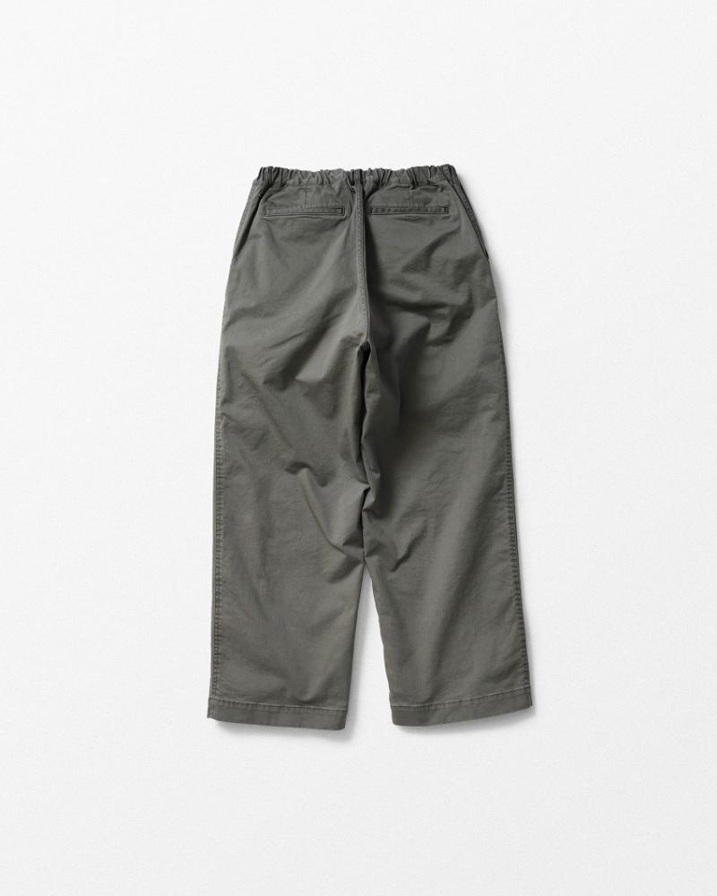 すっかりおなじみになったWHIZのしっかり太いドカンシルエット。初登場は25SSシーズンのTRANSPORT PANTSのあの太さがパワーアップして登場です。履いてみたらあら不思議と大好評、そんな今シーズンは膝にタック無しのタイプです。足元のスニーカーも選ばない万能性とPUのストレッチ性がありながらも、ハリのある素材でシルエットがとにかくキレイです。生地には染料染めの後に、天然穀物を利用した顔料染めを施してこだわりたっぷりに。さらにワンウォッシュされたナチュラルな色落ち感を楽しめます。しっかりした生地感に太目のシルエット、さらに動きやすくて経年変化も楽しめる、履けば履くほどなパンツをお見逃しなく。カラーによってかなり変わる表情にもご注目ください。ウエストはゴムとコードで楽ちんに。キーパーツ、ジップ、ボタンはすべてオリジナルになった間違いなしの一本をどうぞお楽しみください。