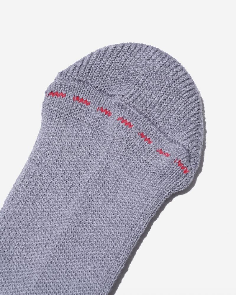 快適なスニーカーライフを提供するMARQUEE PLAYER(マーキープレイヤー)が履き心地とシルエットをこだわり抜いたクォーター丈のリブソックス。生産は、デザインと機能の調和を考え、医療・スポーツ系ソックスの技術を駆使して履き心地を追求した日本製のソックスブランドFAB.IT(ファブイット)に依頼。手編みのようなソフトな風合いの出るローゲージパイル機で丁寧に編み立てつつ、部分毎に編み方を変えることで程よいルーズさとスマートなシルエットを両立した完全オリジナルデザイン。履き口部分に特殊なリッチェル編みを採用。伸縮性に富み、締め付け感が少なく、柔らかな肌触りが魅力。足甲にはゴムを入れてスポーティなフィット感を生み出し、踵を立体的に編み立てることで足のホールド感が増し安定した履き心地を実現。また、肉厚パイルで仕立てた足底が優れたクッション性と吸水性を発揮するとともに足への負担を軽減します。医療とスポーツの技術を混合させ、極上の履き心地とスニーカーとの相性が抜群なクォーター丈に仕上げた自信作。本作は刺し子の伝統的な模様から着想を得て、つま先部分に施した赤いステッチのコントラストが、さりげないアクセントを添えています。カラーはホワイト、グレー、ブラックの3色で展開する『ミタスニーカーズ』が別注したエクスクルーシブアイテム。