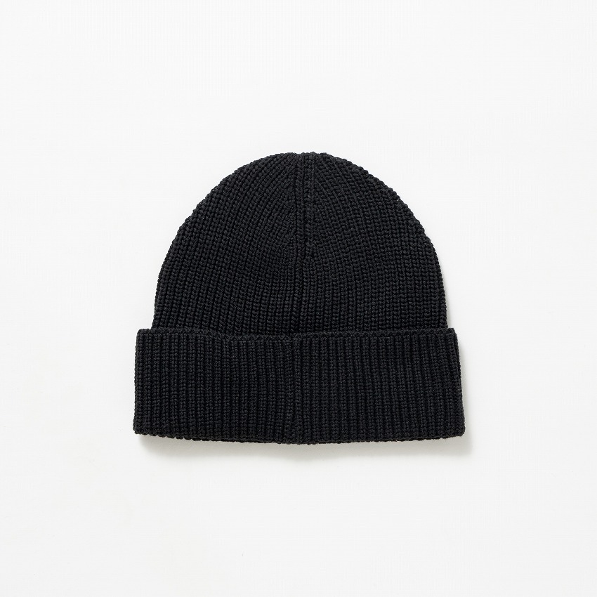 アクリル/コットンの混紡ニット素材を使用したオリジナル型のビーニー。折り返したフロントパネルにフェルトパッチを施したデザイン。被ったときのシルエット、歪みのない綺麗な形状にこだわったオリジナルのシルエット。