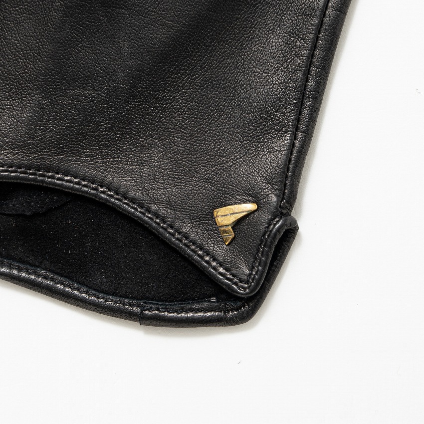 0.5mm厚のイタリア産ラムレザーを使用した上品なシルエットのドライビンググローブ。手首側にMASA SCULP 別注のオリジナルウィングパーツを付属。パーツは真鍮です。