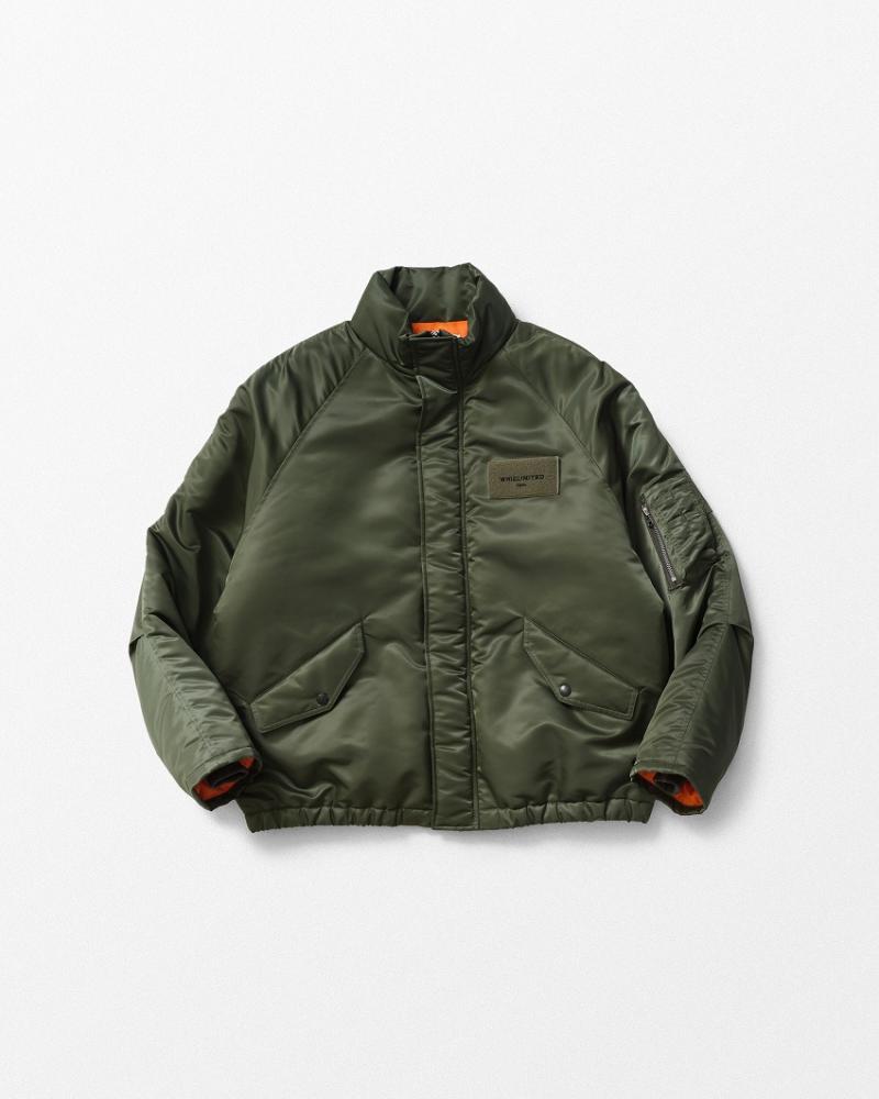 真冬に大活躍してくれるWHIZのお得意で本気のミリタリーシリーズ。新作もこだわりたっぷりの、久しぶりなナイロンの中綿入りミリタリージャケットの登場です。その形はN2-Bのような、N3-Bのような、いや、今の気分だとフードがいらない、裾の仕様は中にリブで、と削ぎ落としたデザインはまさに今のWHIZなミリタリージャケットとして完成。細かく分解して伝えれますと生地はまさにミリタリーを彷彿させるナイロン生地+袖にはN3-Bのようなラグランの切り替え+袖先の内側には二段リブで防風、防寒仕様で真冬もこれさえあればもうドンとこいです。イメージとしてすっきりとしたミリタリー、シンプルな立ち襟ですっきりフォルムに裾の丸みを出して逆にミリタリーの雰囲気を引き算したとにかくこだわりがいっぱいです。中綿にはClimasheld APEX 3ozを使用したふんわり暖かかジャケット。左胸のマジックテープは取るとロゴの刺繍が出てきます。今季はしっかりロゴが見えるカラーリング(ホワイト、ブラック)になっています。ボタンは全てオリジナル、ポケット裏地はあったかで、リブの作りは着心地とタフさ込みで秀逸です。フラップ付きポケットはフライトジャケットの仕様でミリタリーとスポーツが融合しました。ラグラン袖はこれでもかと着やすく、これから長く時間を重ねていく事でどんどん雰囲気が出てくるのもとても楽しみ。どんなスタイルのパンツも合わせやすい万能ジャケットをお楽しみ下さいね。※裏地は同色です。