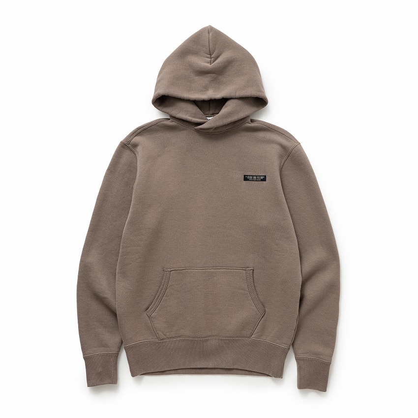 13oz.のコットン裏毛起毛素材を使用したクロスネックフーディー。左胸に“BLACK AND YELLOW”の織ネームを叩きつけたデザイン。腹部にはポケット縁をバインダー仕上げをしたマフポケットを配置。襟元はブランドがオリジナルで開発したクロスネックに仕立てた防風性の高い意匠。身頃はややタイトなシルエット。製品にてワンウォッシュ済み。