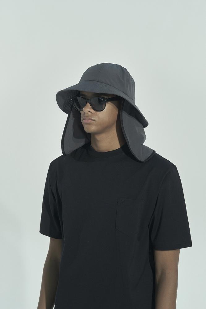 帽子ブランド「CA4LA」と作成したナイロン素材でストレッチ性のある生地を使用した、サンシェードハット。接触冷感・シワ防止・速乾性を備え、真夏でも快適に過ごせる仕様です。大きめのシルエットで頭周りにゆとりを持たせ、裾はドローコードで調整可能。さらに着脱可能なサンシェードを備え、日差しの強い日でも安心です。同素材で展開しているベスト、ショーツ、Tシャツ、ロングスリーブとセットアップで揃えれば、統一感のあるスタイリングが楽しめます。機能性とデザイン性を兼ね備えた、大人のための“新しいサマーウェア”シリーズの一品。暑い季節も快適かつスタイリッシュに活躍します。