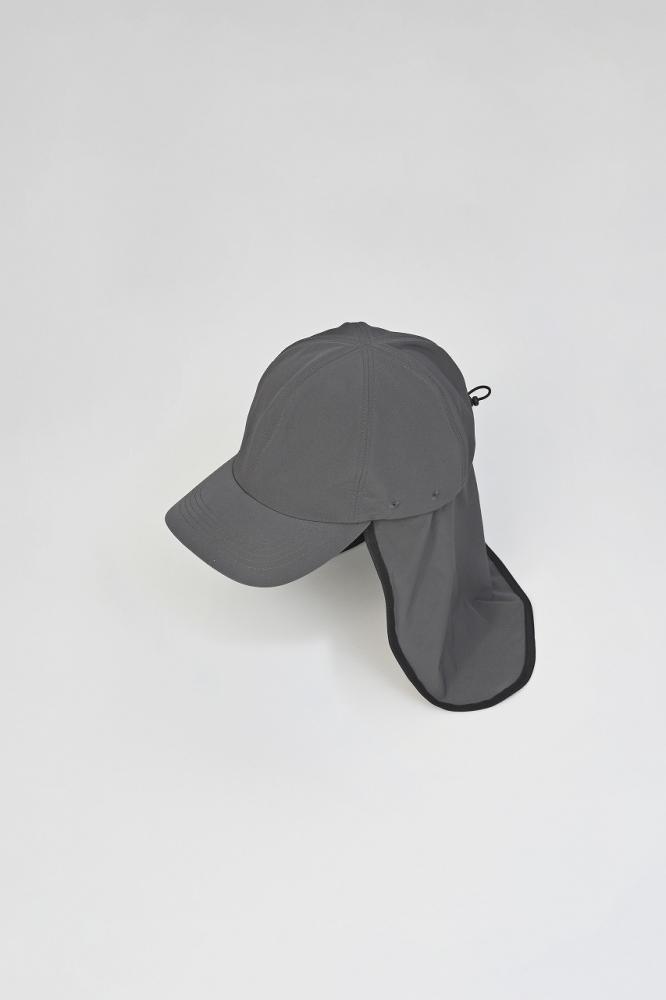 帽子ブランド「CA4LA」と作成したナイロン素材でストレッチ性のある生地を使用した、サンシェードキャップ。接触冷感・シワ防止・速乾性を備え、真夏でも快適に過ごせる仕様です。大きめのシルエットで頭周りにゆとりを持たせ、裾はドローコードで調整可能。さらに着脱可能なサンシェードを備え、日差しの強い日でも安心です。同素材で展開しているベスト、ショーツ、Tシャツ、ロングスリーブとセットアップで揃えれば、統一感のあるスタイリングが楽しめます。機能性とデザイン性を兼ね備えた、大人のための“新しいサマーウェア”シリーズの一品。暑い季節も快適かつスタイリッシュに活躍します。