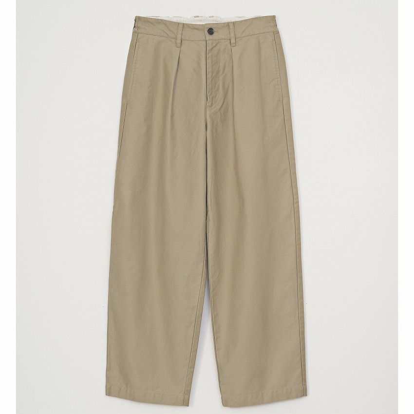 ヘビーミリタリーモールスキンを使用し、洗いをかけて風合いを引き出したアンクル丈ワークパンツ。耐久性に優れ、タフに着こなせる素材感で、長く愛用できる一本です。洗いを施すことで柔らかさと独特のこなれ感が生まれ、ワークテイストながらも着こなしやすい表情に仕上がっています。ウエストはゴム入りで快適なフィット感を実現。少しバルーンシルエットに仕上げ、ゆったりとした動きやすさと、程よい抜け感をプラスしました。カジュアルなデイリーユースはもちろん、アウトドアや作業着としても活躍する、丈夫で使いやすいアンクルパンツです。