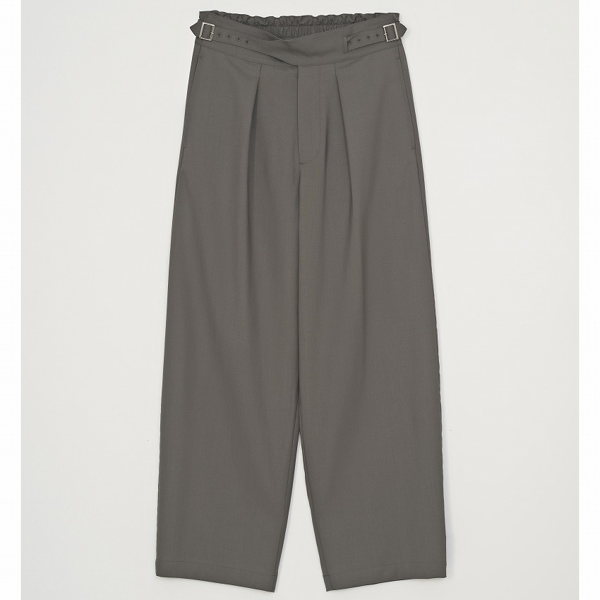 上質なウール100%を贅沢に使用した、弊社人気シリーズのグルカスラックス。ウールならではの通気性・吸放湿性に優れ、蒸れにくく温度調整がしやすいため、夏でも快適に着用できます。ウール特有の繊細な光沢としなやかな落ち感により、カジュアルになりがちな夏のスタイリングに自然な上質感を添え、大人の雰囲気を格上げ。肌に触れたときのサラリとしたドライな質感は、気温の高い日でも心地よさをキープします。ウエストはグルカ仕様に加えゴムを配し、ベルトなしでも快適にフィット。上品なテーパードシルエットは、スマートさと程よいリラックス感を両立し、セットアップはもちろん単品使いでも幅広く活躍します。同素材のノーカラージャケットと合わせれば統一感のあるコーディネートが完成し、品の良さと夏の快適さを兼ね備えた、大人のためのサマーウェアです。