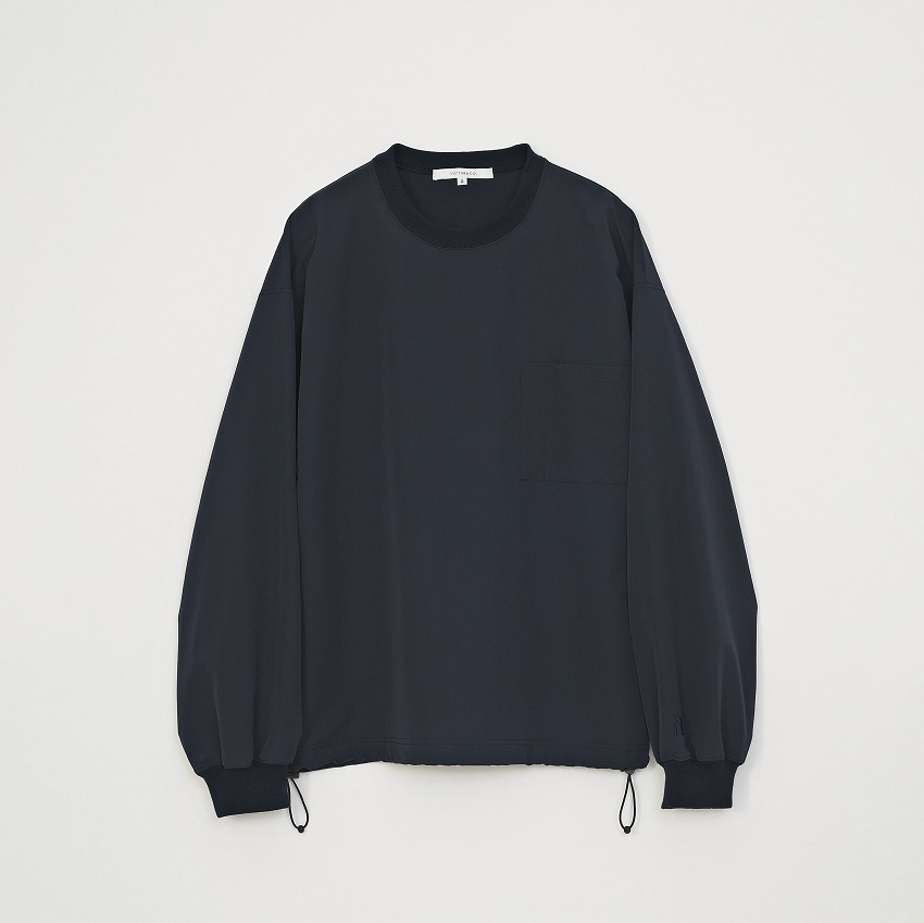 ナイロン素材でストレッチ性のある生地を使用した、ロングスリーブ型の一着。接触冷感、シワ防止、さらに速乾性も備え、真夏でも快適に過ごせる仕様です。胸には大きめのポケットを配し、袖にはさりげない刺繍を施し、裾にはドローコードを備えることで、シルエットや表情の調整が可能。柔らかくしなやかな素材感が動きに寄り添い、アウトドアからタウンユースまでストレスなく着用できます。同素材で展開しているショーツ、キャップ、ハット、Tシャツとセットアップで揃えれば、統一感のあるスタイリングが楽しめます。機能性とデザイン性を兼ね備えた、大人のための“新しいサマーウェア”シリーズ。暑い季節も快適かつスタイリッシュに着用できる一着です。