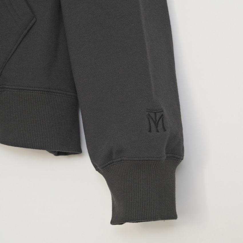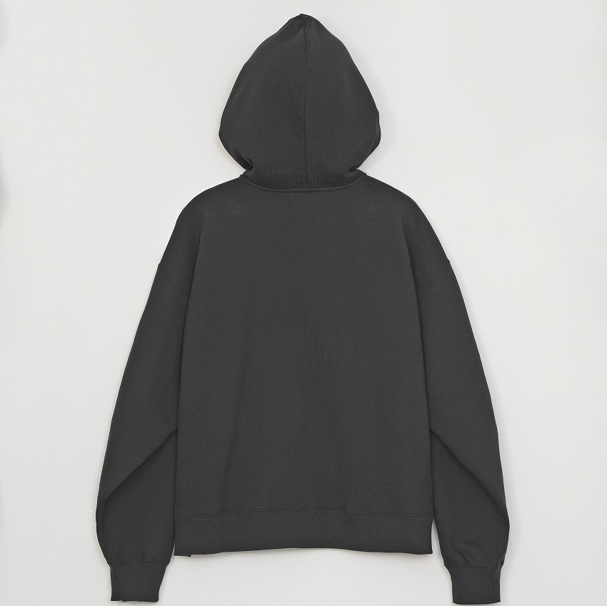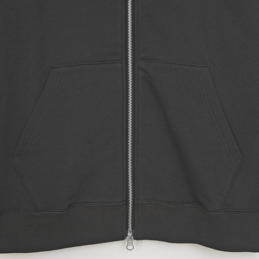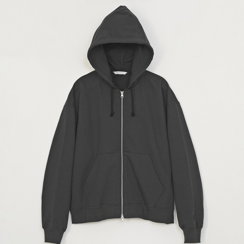 度詰めでUSED感のある国産裏毛素材を使用した、ショート丈ジップパーカー。程よい厚みと柔らかさ、優れた通気性・保温性を兼ね備えつつ、着込むほどに風合いが増す素材感が魅力です。大きめのフードを備えたデザインで、シルエットに立体感とアクセントをプラス。身幅にゆとりを持たせたワイドシルエットながら、袖丈は長めで着丈はコンパクトに設計。重たく見えず、現代的なバランスを実現しています。ウエスト位置が高く見えるため、ボトムスとのコーディネートでもスタイルアップ効果が期待できます。フロントは逆開ジップ仕様でスムーズな着脱が可能。USED感のある素材とショート丈、そして大きめフードのデザインが、カジュアルな日常着としてはもちろん、ミニマルで洗練された印象を添え、幅広いシーンで活躍します。