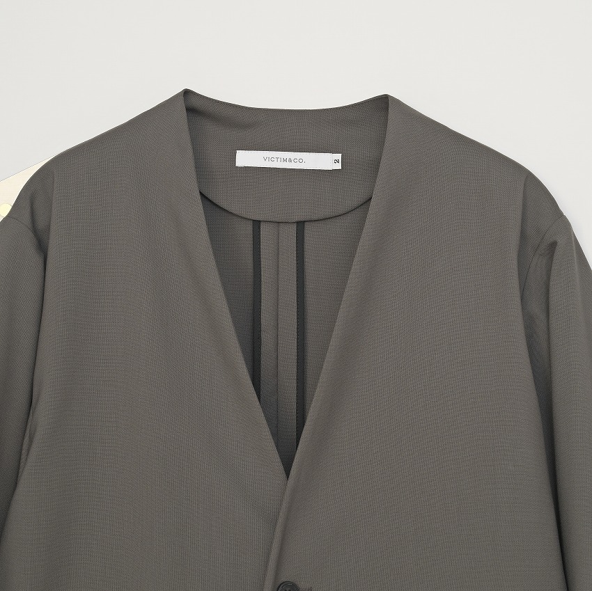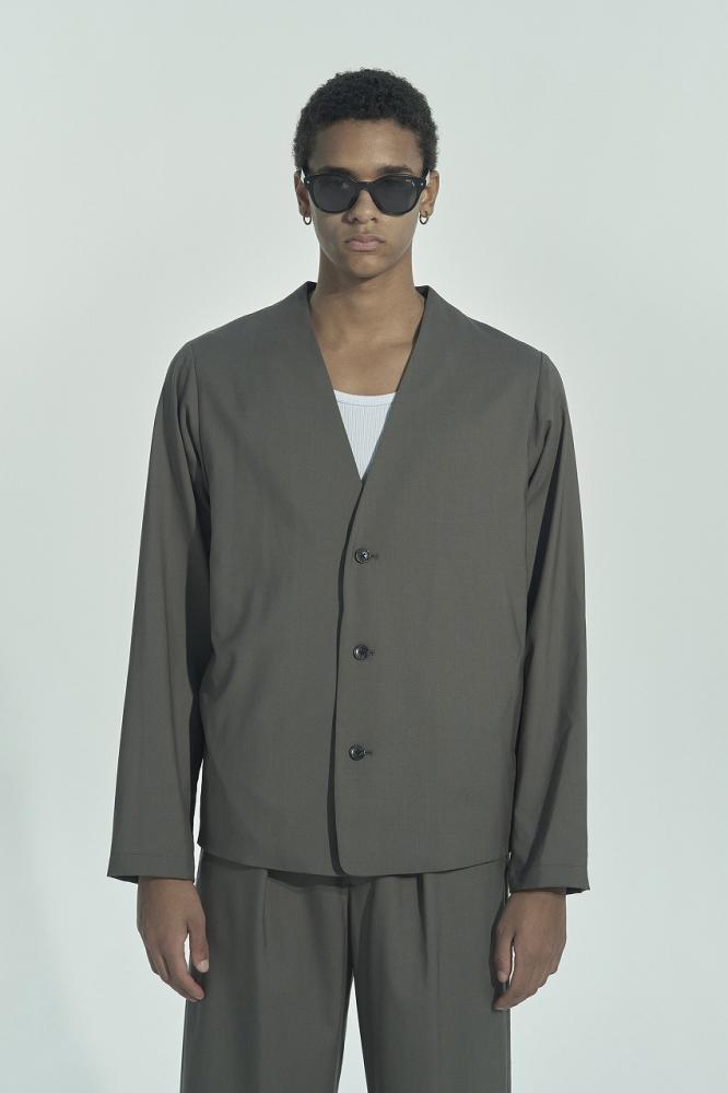 COLLARLESS WOOL JACKET *BROWN*