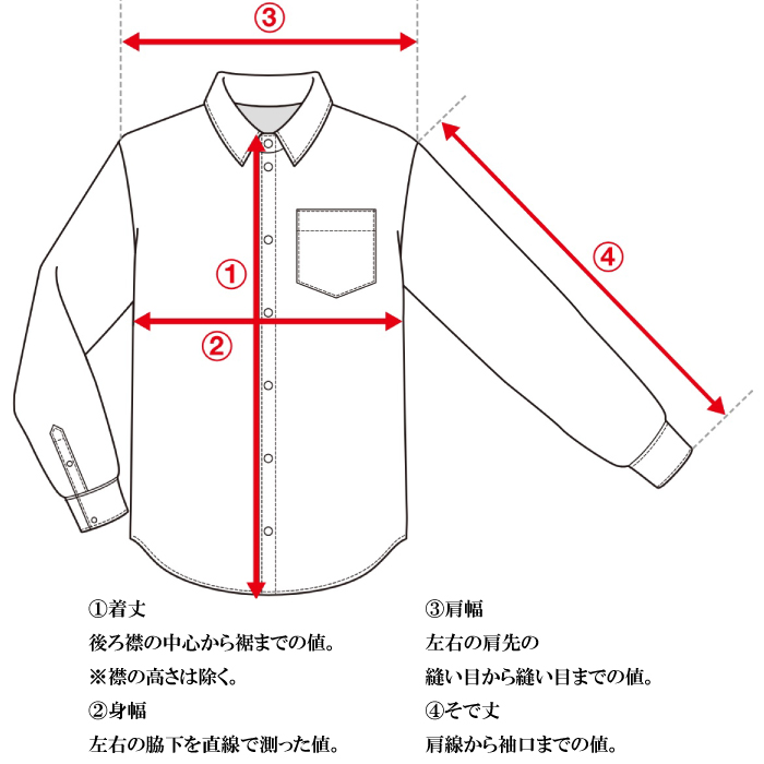 サイズ / 着丈 / 肩幅 / 身幅 / 袖丈