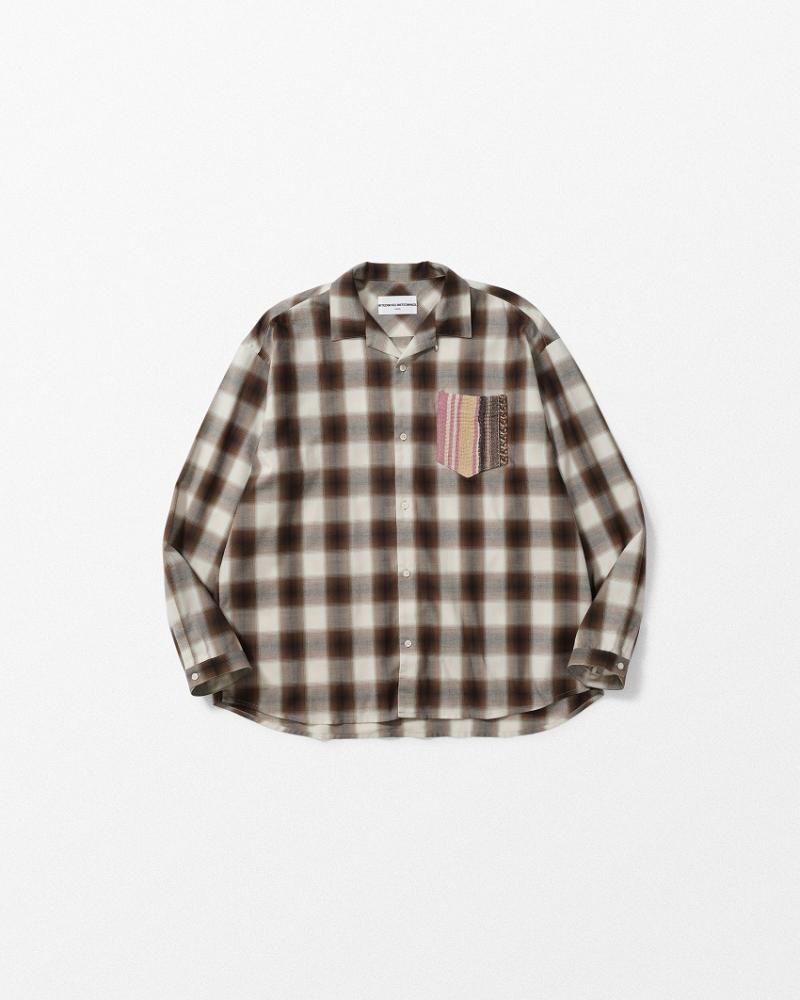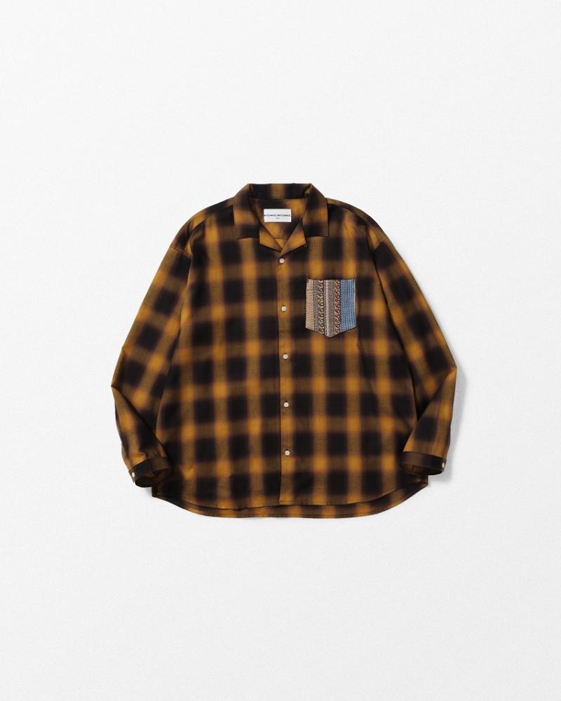 BACKROOMにきっと皆が持ってるチェックシャツ。そしてオンブレシャツは永遠の定番。特にWHIZのボケシャツには思い出もいっぱいです。丁度良いチェックって中々見つからない中でこの絶妙なブラウン(×ホワイト)とブラック(×ブラウン)はすぐに着て飛び出せるジャケットの中にも最高な一枚。この数年やたらシャツが気になってしまうのは年齢なのかもしれませんがワードローブに何種類あっても楽しいですね。着やすい形のWHIZのチェックシャツはいつも要チェックなアイテム。ポイントとなる左胸ポケットにはヴィンテージのカンタ刺繍(インドの手仕事の極み)の入ったパッチワーク生地を使用しています。そんなパッチワーク生地の柄はランダムなので一期一会を楽しんでください。ジャケットやパンツの裾と合わせても素敵です。