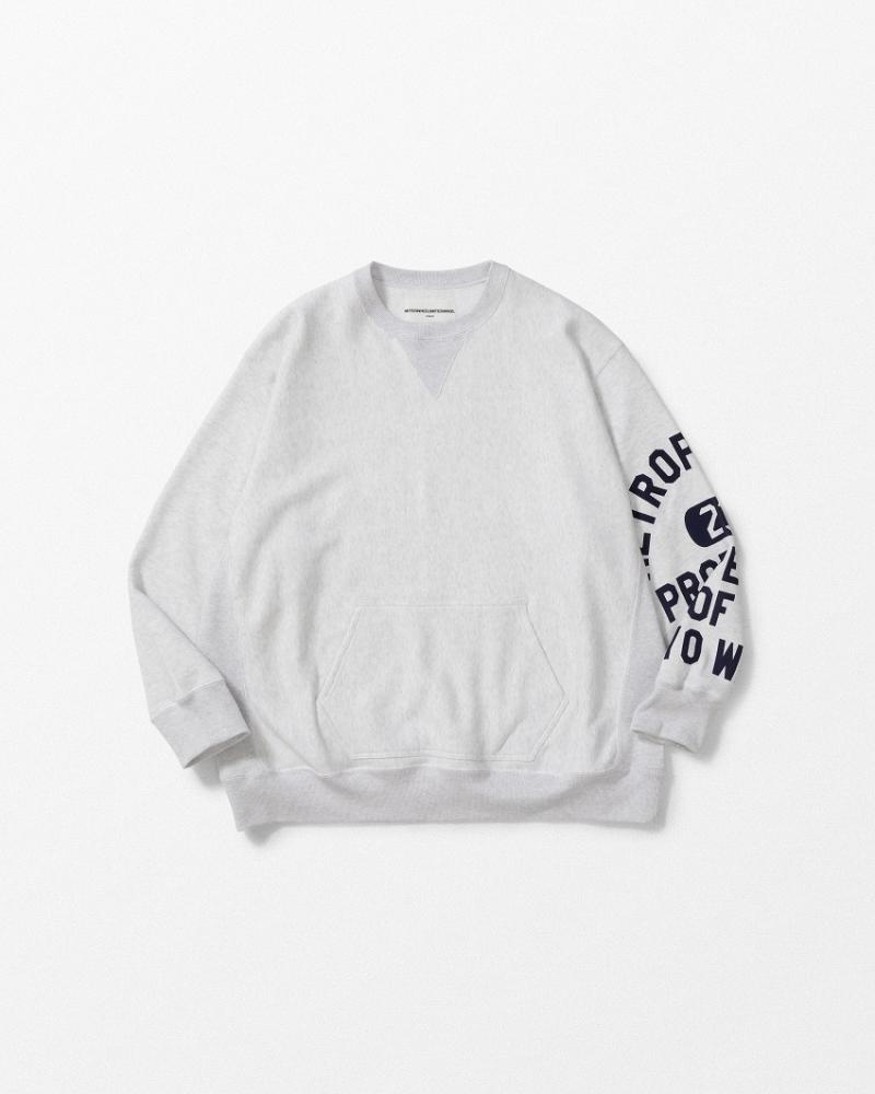 今シーズンのテーマ「BACKROOM」とくればチャンピオンリバースウィーブは必ず繋がります。「独特の生地の使い方と、あんまり意味をなしていないようなリブ使いが好き」まさに歴史と形、愛される理由がずっとあるスウェット。一言にカレッジ、といってもフロントでなく、左袖にぐるりとプリントが入る角度があるWHIZらしいクルーネック。ボリューム感やリブの雰囲気も最高なのですが、プリント具合が洗えば洗うほどに楽しそうです。そしてバックにはWHIZのサークルWが入ってどこかさらに懐かしく。そしてカンガルーポケットがついているのもにくい仕上がりになったあの時代のスウェットいいとこいっぱい、な見逃しない一枚です。クルーネック好きな方は是非チェックを。