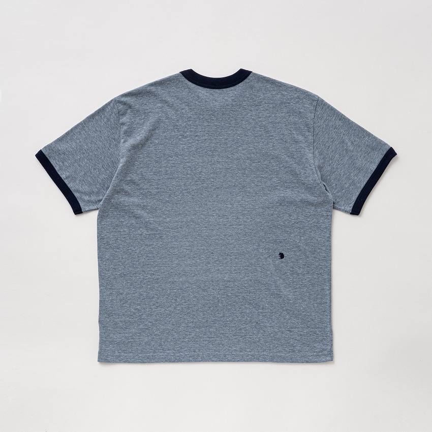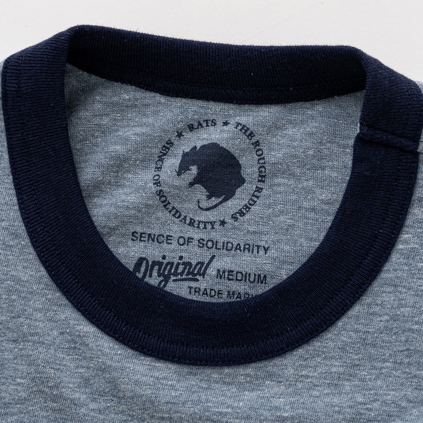5.3オンスのコットン天竺素材を使用したトリム仕様のS/S TEE。フロントはオリジナルグラフィックを染み込みプリントで表現したデザイン。襟は2本針のバインダー付け、と堅牢な仕上がり。背面左脇にRatモチーフのワンポイント刺繍。レギュラーフィットシルエット。