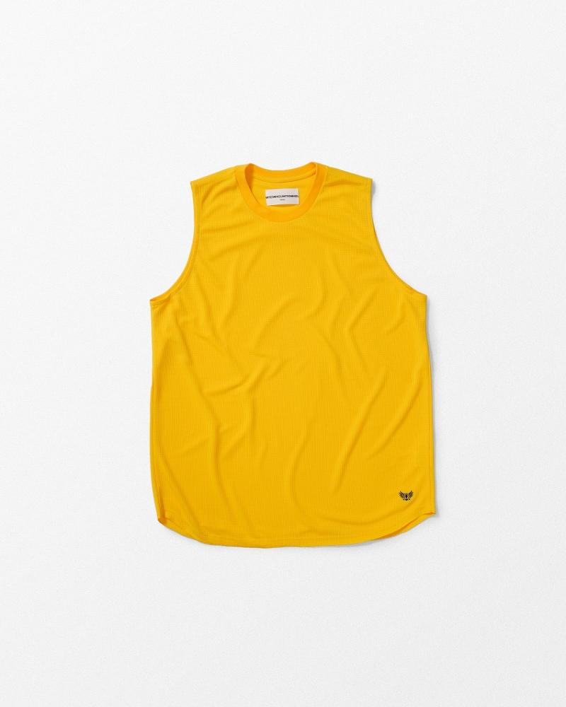 お待たせしました!WHIZの必須アイテムの筆頭と言えばノースリーブことスリーブレスシャツ。裾からちょっと出る着丈と機能性はいつも言ってますが特に思い入れが強いアイテム。レイヤードで裾から出すスタイルはもうずっと自分の定番中の定番。新作は発色も最高なイエローとレッドが登場、素材にこだわったCOOLMAX EcoMadeファイバーで。吸水速汗、 紫外線防止機能、生地感も着心地も長さも最高。おなじみの着丈が長さでシンプルになりがちな夏のTシャツもレイヤードスタイルでより楽しく。サラッとしたメッシュ感の着心地でさら酷暑に必須となりました。これさえあれば快適なことこの上なし。発色が明るめの上記2色は見逃せないとして、結局ホワイトのこの生地なんて便利な事この上なし、そしてブラックも久しぶりに合わせる幅がありそうで…どれもあとから必要になるであろうシリーズ。要は全色必須シリーズ、どうぞお見逃しなく。初めての方、未体験の方はこれさえあればWHIZの夏が始まりますのでご安心。さらにしっかりした首回り、そして長さをしっかり楽しめる丈感、どうぞお試しください。夏をさらに快適に楽しみましょう。