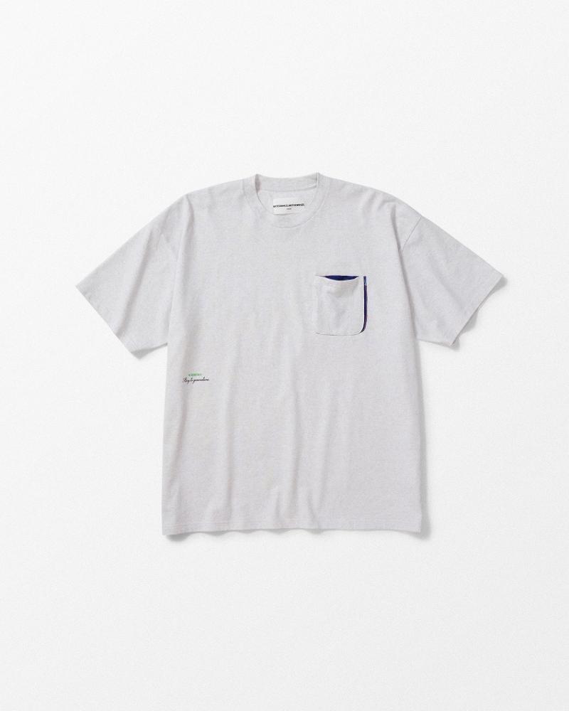 ポケT好きのみなさま、お待たせしました。25SSのバンダナポケットをこれでもかと着ました、それがリミックスして登場です。2重になったポケットが特徴的で下に付いているポケットの生地はカンタ刺繍(インド・ベンガル地方で古くから伝わる、古布(主にサリー)を数枚重ねて刺し子を施した伝統的な手芸・テキスタイル)の入ったストール生地を分解して作った物。一点一点色味、柄、雰囲気が違うのが特徴です。カラーリングは統一されています。ポケット部分は少しずらしてさりげないこだわりにもご注目。カンタ刺繍の下も使えて2重ポケット。右わき下にはWDデザインが入ります。こんな丁度いいオリジナルテキスタイルのTシャツっていつも夏の主役になりますね。どうぞお楽しみください。