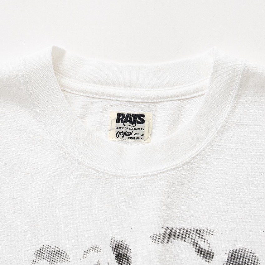 6.4oz.のコットン天竺素材を使用したS/S TEE。フロントにマリリン・モンローのフォト・レターグラフィックをインクジェットプリントで表現したデザイン。背面右脇にRATモチーフのワンポイント刺繍。ロックネック仕立て、レギュラーフィットシルエット。製品にてワンウォッシュ済み。