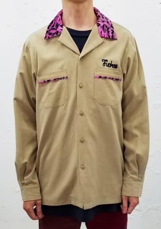 LEOPARD COLLAR OPEN NECKSHIRTS *ベージュ×ピンク系ヒョウ柄刺繍無し*