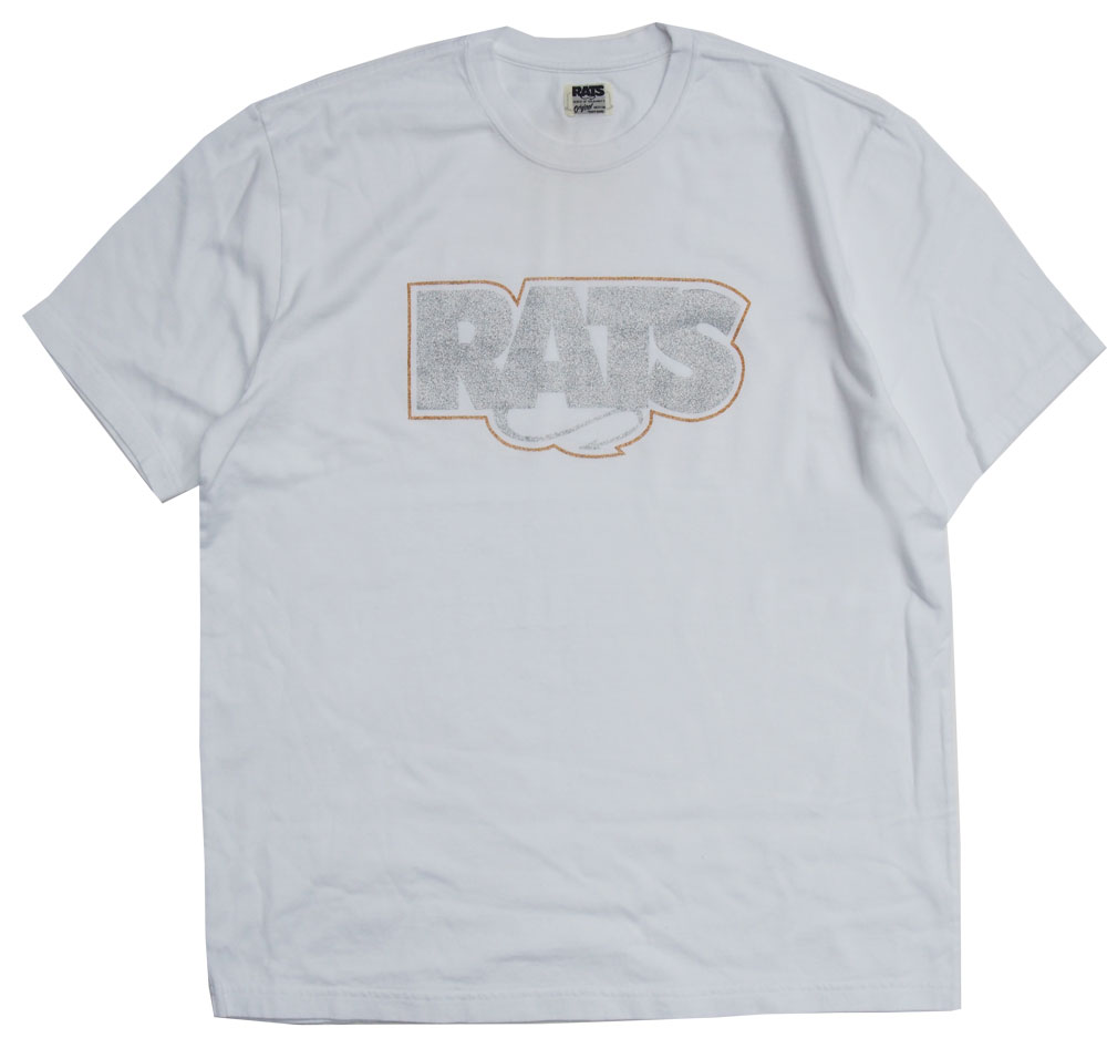 シンプルなボックスロゴを配したTシャツは、過去のRATSのグラフィックの中ではもっとも王道のデザインのひとつだが、今季はラメを効かせてクリアラバーのプリントを施すことでアップデート。ほどよく厚みのあるオリジナルのコットンボディを採用していて、オールドスタイルの古着よろしく、着込んで洗ってを繰り返して風合いが強まっていくのを楽しみたい。※コーティングプリントが施されているため高温乾燥はお控えください。